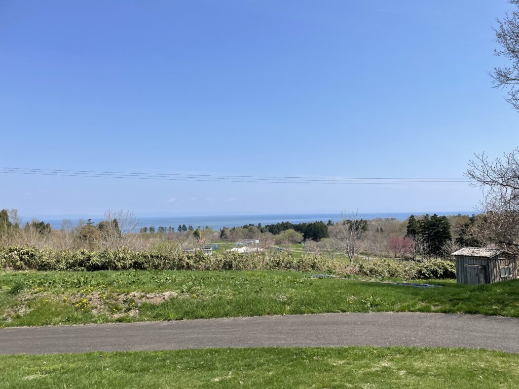 場内を散歩したときに撮りました。展望台からはもっと素敵な眺めが楽しめます。GWだったので桜も咲いていました!日中は過ごしやすい気温でしたが、朝晩はまだ寒かったので暖房器具や防寒具が必須です。エゾリスを見ることもできました。